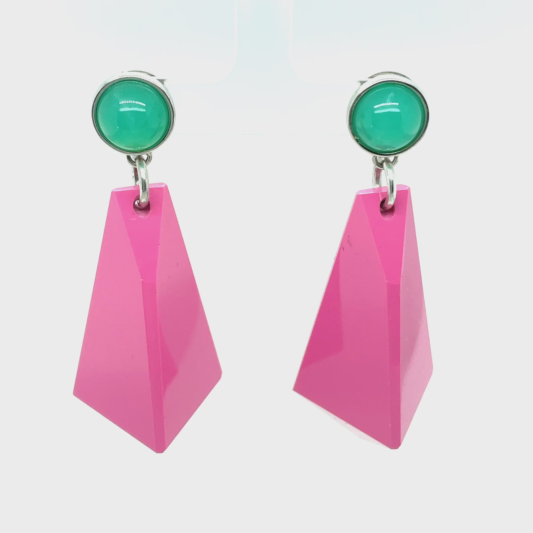 Chandelier Ohrringe mit Chrysopras Cabochons.